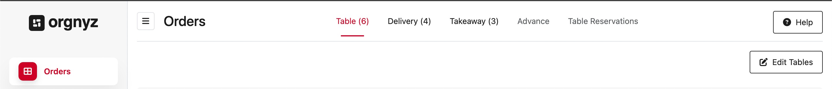 Once you finish onboarding, you’ll land on the main Orgnyz home screen (Orders). This is where you will spend most of your time managing your restaurant operations.
