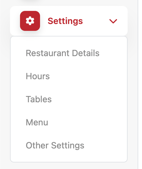 The Settings section in Orgnyz lets you configure everything about your restaurant, from basic details to menus and printing preferences. You can access it from the left navigation menu.